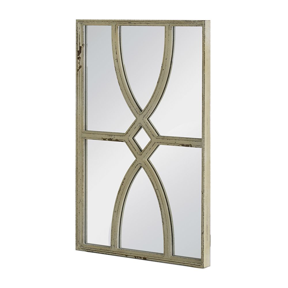 This set of two carved accent mirrors is sure to capture the gaze of your guests with their intricate curved motifs and distressed white finish. Whether they are displayed as a pairing or separated, the unmatched blend of modern and rustic charms will embellish the decor in your entryway, living room, foyer, or bedroom.