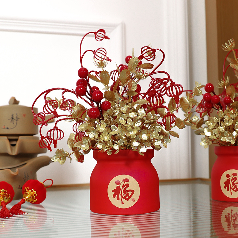 1pc New Year Spring Festival Pots; Artificial Flowers Plants Festival Pots For New Year Spring Festival Home Restaurant Tabletop Festival Festival Par