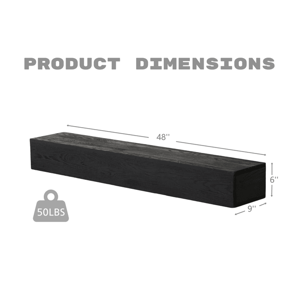 48" Embossed Fireplace Mantel Western Red Cedar Wall-Mounted & Floating Shelf for Home Decor