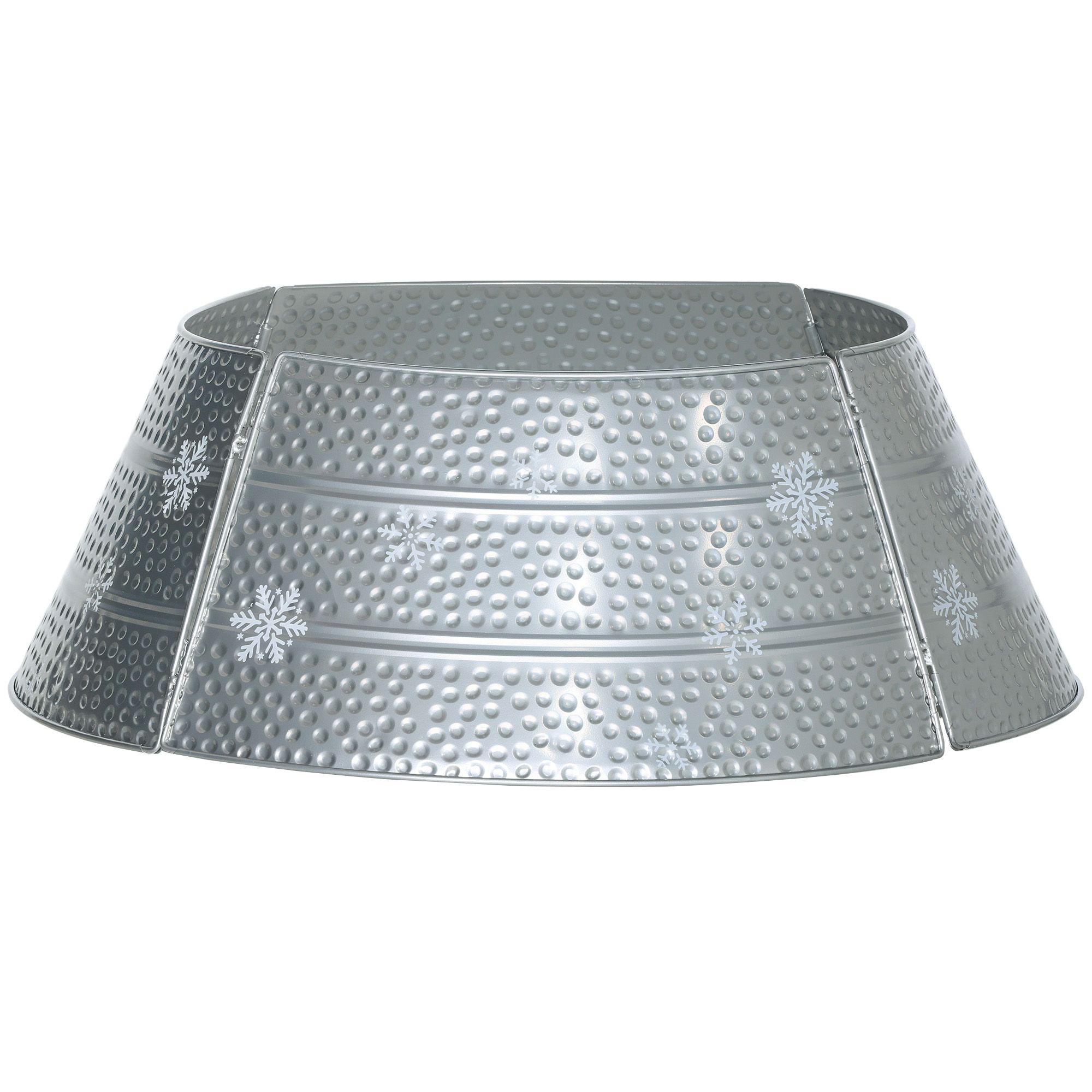Home > HOMCOM Christmas Tree Collar Steel Tree Ring Skirt Home Xmas Decoration with Snowflake Engraved, 26" Base, Silver