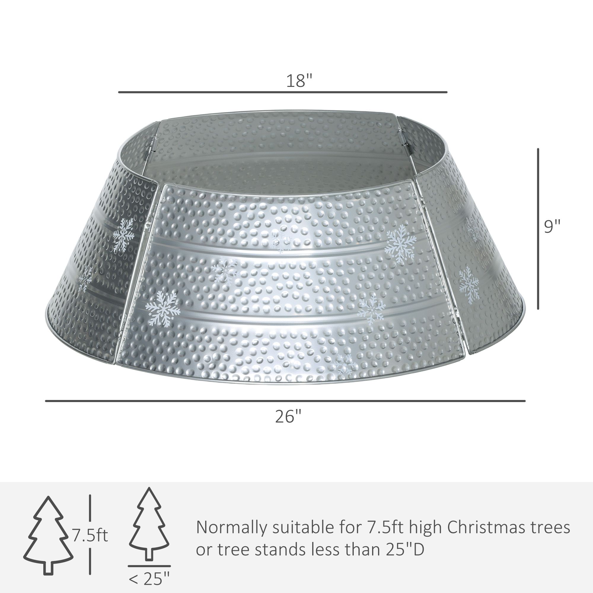 HOMCOM Christmas Tree Collar Steel Tree Ring Skirt Home Xmas Decoration with Snowflake Engraved, 26" Base, Silver