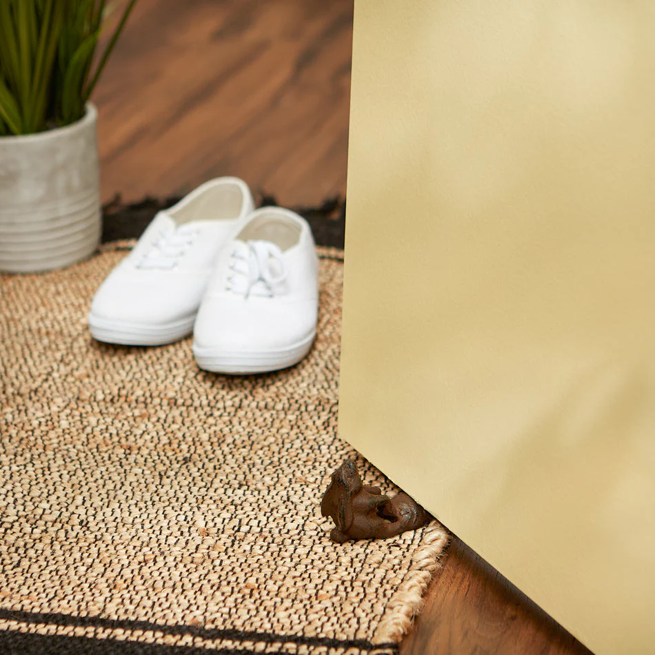 • Adorable cast iron door stop is functional but also adds charm to your space